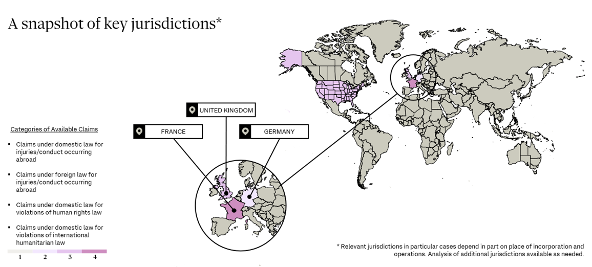 While the United States has long been a prominent forum for such litigation, other jurisdictions, including France, Germany, and the United Kingdom, are increasingly asserting jurisdiction over corporate conduct abroad. Below are the highlights, but further analysis of litigation risks in these jurisdictions—including evolving case law and enforcement priorities—will be covered in upcoming blogs in this series, so stay tuned.
